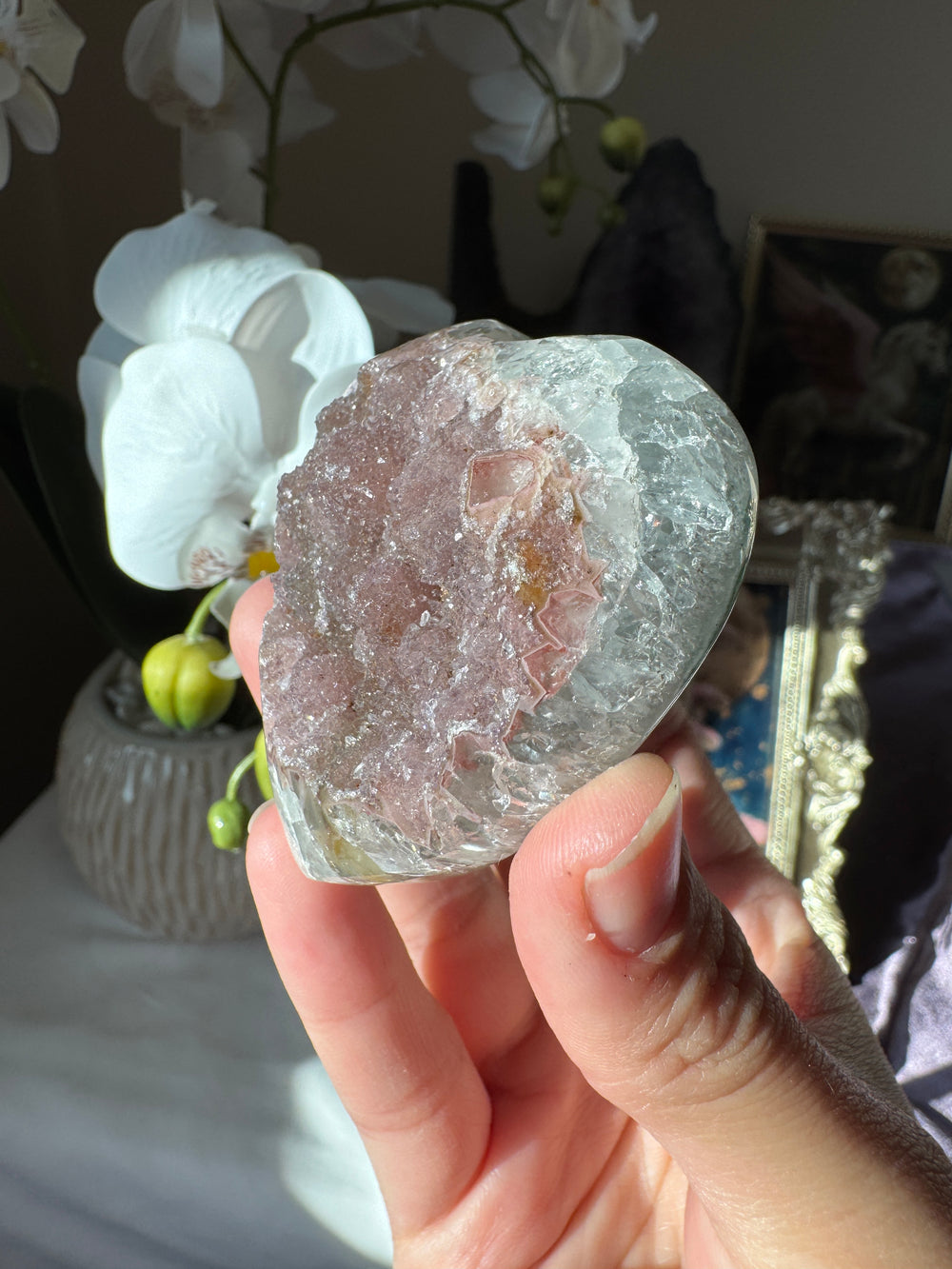 Pink Druzy Rainbow Amethyst Heart