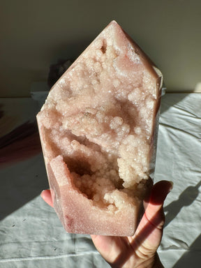 Chunky Double Sided Pink Amethyst Tower with Red Druzy